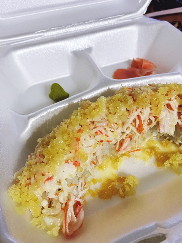 For dinner, my parents went to my favorite sushi place while I had to work and they brought me my favorite roll (with a side of rice and noodle with pink sauce that isn’t pictured, but I did eat today for my lunch – it was good!) and it was delicious and much needed since I hadn’t eaten there in a hot minute.