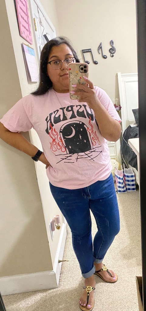 So after I got everything done and sorted, I put all my books in my bag and loaded it up in my car and headed to get my coffee before I headed to class. I wore my Suspish shirt today, it’s so comfy, I love it. 💕